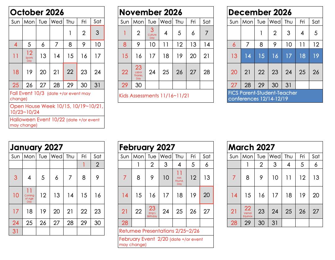 2026-2027 CALENDAR/年間カレンダー